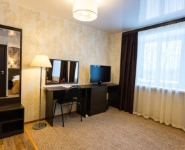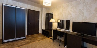 В каждом номере удобная кровать, раскладной диван или кресло, рабочий стол с тумбой, шкаф, багажница, вешалка для верхней одежды. Ванная комната оборудована современной качественной сантехникой. Вам будет удобно, в комплектацию номера включено: обслуживание в номерах 24 часа, беспроводной Интернет Wi-Fi, туалетные принадлежности, фен, тапочки, халат, телевизор, парковку, телефон.