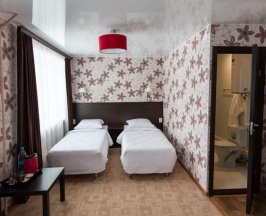 В номере размещено: кровать 80х200 (2 шт.) или 160х200, телевизор, душевая комната со всеми необходимыми косметическими принадлежностями, тапочки и халат, шкаф для одежды, диван-кровать, журнальный столик, чайник и чайный набор, теплые полы, бесплатный интернет Wi-Fi.