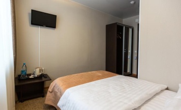 В номере размещено: кровать 140х200, телевизор, душевая комната, шкаф для одежды, теплые полы, бесплатный интернет Wi-Fi.