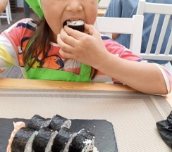 Вчера на дне рождения Альфы были на дискотеке, уличном бассейне, куча анимации, пенное шоу, внутри в бассейне вечером когда солнце село. Потом пошли на мастер класс по суши роллам и детки в восторге от гостеприимства и еды
