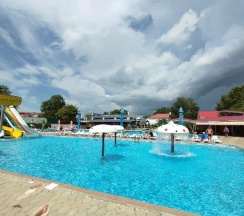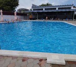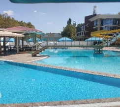 Были в июне 2023. Все очень понравилось - территория, расположение, питание. Ехать конечно сюда надо только с детьми или любителям спокойного отдыха. Дискотек, баров , вечерних развлечений здесь нет. Только для детей. Бассейны, один из которых с горкой. Бар у бассейна где нальют, есть кафе около рецепшена там жарят блинчики и пиццу до 22 часов и если ребенок голоден то есть чем накормить. Аниматоры , волейбольная площадка ( не песок ) , горка ( на фото ) . Территория закрыта и хорошо охраняется. Питание очень разнообразное и есть паровые котлеты, каши, супчики для очень маленьких деток. Удивило, что помимо вина на обед и ужин, здесь есть и водка ! Уборка номеров каждый день. Море в 5 минутах и собственный огороженный пляж. Насчет санатория выбор небольшой, если лечиться - то все-таки не сюда. Так, что-то по -мелочи можно сделать, Крым и Кисловодск выигрывают. А вот как хороший отель для родителей с детьми - самое то! Рекомендую! Вижу не очень хорошие отзывы, да, всегда есть что улучшить, но и сейчас все на очень достойном уровне!