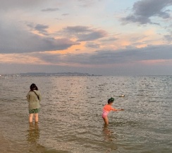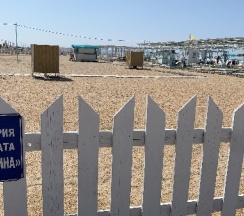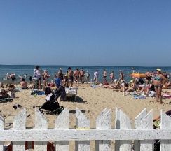 На берегу есть мидузы, крабы чайки и устрицы и чуть не забыл