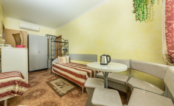 Размещение двух взрослых и одного ребёнка на дополнительном спальном месте. Расположены на втором этаже второго корпуса с террасой. В номере собственный санузел, телевизор, кондиционер, чайник.
