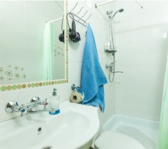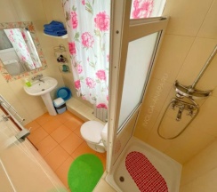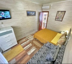 Уютный номер с двумя односпальными кроватями, раскладным креслом и двухъярусной кроватью. В номере также телевизор, кондиционер, холодильник, чайник, собственный санузел.
