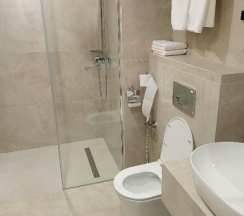 Мы жили в 4* корпусе, есть лифт, в лобби есть кофе-станция (за доп. плату можно взять кофе с собой). Номер шикарный, большой, комфортный, есть чайник и чайный набор, халаты, тапочки, всё как положено, уютный балкон с боковым видом на море.