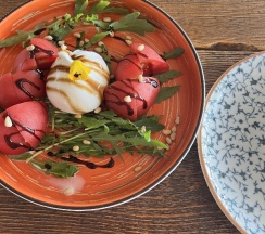 Самая уютная гостиница в Геленджике, ресторан при отеле, первая береговая линия, вкусная грузинская кухня с видом на море, до моря пару шагов, персонал замечательный, обязательно вернемся в августе!!! Процветания вам