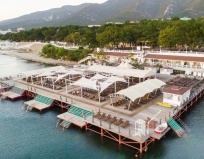 Честный отзыв, не могу я пять поставить. Сразу ответ на вопрос : стоит ли ехать? Да. Едьте. И прочтите мой отзыв, чтобы быть готовыми))) С кухней прям беда, все не очень то невкусное, как будто обложка. То ли продукты дешевые. То ли повара студенты. Голодными мы конечно не были. Но и удовольствия от еды не получили. Реально с кухней надо что-то делать. Были в четверках. Там меньше выбор. Но вкусно. А здесь всего понаставлено. А есть нечего😂. А в остальном все неплохо. Территория красивая. Для детей очень всего много. Анимация прекрасная. Алкоголь бесплатный не знаю на вкус. Мне кажется не очень. Меня смущает вино из краников. Мне кажется на краниках персонал бодяжит, сок вообще из аппаратов никакой. Зато есть на детской линии всегда в мини упаковках. Мы только брют пьем. И за ним ходить на второй этаж нужно. Неудобно. Но не забываем , что это четвёрка, а брют кстати хороший льют. Аристов Анима. Неплохой прям. Бармены правда на этом баре на втором этаже очень обижены жизнью. Улыбки не видела ни разу, может им платят мало, но прям неприятно, как будто ты им что-то должен. Номера чистые. Уборка -как повезет . Мы оставили чаевые, а нам даже не пропылесосили, а в другой раз просто так сменили постельное. Жили в суперриор. Номер достаточно вместительный. Но если возьмете стандарт -там места мало. Почему то много пьяных людей. Хотя мы все время бываем во «все включено», но столько пьяных не видели ни разу. Может потому что это Геленджик 😂😂😂. Но буйных вроде не было))) Пляж очень здорово сделан. Аквакомплекс неплохой. Детям от 6/7 лет вообще супер. Но по мне надо буквально на градус все потеплее. В общем. Красивая картинка. А качества не хватает. Какие-то прям разные впечатления. За анимацию, за территорию, за пляж, за детские комнаты, за бесплатное предоставление детских колясок и еще наверно за что-то хочется поставить пять с плюсом. За кухню, за доброжелательность персонала ( на раздаче и на баре) хочется поставить три.