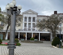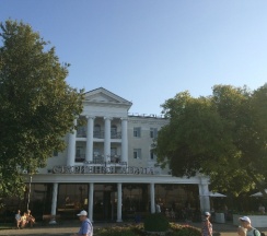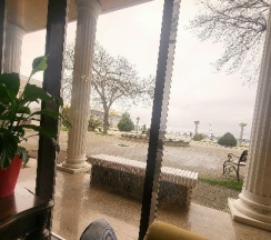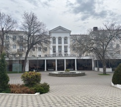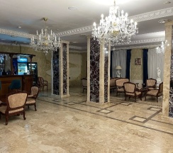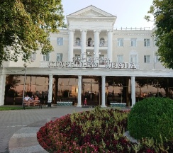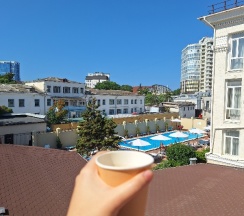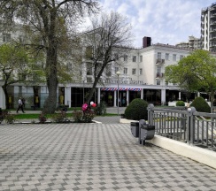 Нам понравилось все. Просто все. Для меня минусов нет. Это старый отель. В нем сохранили такой приятный (допускаю, что это субъективно) флер хорошего советского курорта: ковровые дорожки, фальш-колонны, хрустальные люстры, зеркала. Но его очень хорошо и любовно осовременили. Номер небольшой, но нам вполне хватило. Шкаф, где все поместилось, большая кровать, место под ноутбуки (я работала), ванная комната. И вид из окна на море.