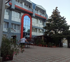 Везде было написано , что у пансионата две звезды, но могу сказать уверено, что три минимум! Расположен пансионат в 15 мин от галечного пляжа и где-то 25 от песчаного. Но специально так выбирал, так как хотел и по городу регулярно гулять. Номер снимали вчетвером, дали двухкомнатный, зал и комната. Место было много, единственно я бы ещё добавил чуток мебели. Но главное , просторный балкон! Вечером там сидишь и просто кайфуешь! Также в номере душ,туалет, диван, кондиционер, тв и холодильник. Сушилка для белья на балконе. Питание брал полный пансионат, то есть три раза в день. Утром обычно каша+блинчики/яйцо или что-то подобное, кофе/чай, обед более сытный - салат, суп(борщ/харчо/куриный и т д, второе (гарнир и мясо/курица и т д), компот, ужин - второе блюдо (мясное рагу/плов/пюре с котлетой или рыбой и т д)+десерт (кекс, вафля и т д. За 10 дней повторилось только раз. Все горячее, вкусное, съедали все! На территории есть свой бассейн с лягушатником для детей, выдают полотенце. Уборка в номерах каждые три дня. В целом, достойный пансионат, вежливое обслуживание!