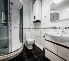 Апартаменты оборудованы всем необходимым для комфортного проживания: 4 односпальные кровати, диван, обеденная зона, плита, холодильник, собственная ванная комната с душевой кабиной и туалетом.