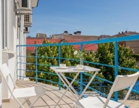 Гостиница расположеная прямо у входа в Паралию, но несмотря на это, в номере совершенно не слышно музыки и шума с улицы. На каждом этаже есть несколько сушилок и гладильная доска, проблем с сушкой и глажкой никогда не возникало.