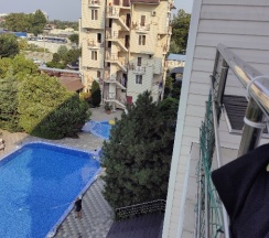 Гостевой дом понравился своей территорией, очень разнообразная зелень, бассейны, один с горячей водой, анимация для детей и взрослых добавила настроение. Администратор Светлана очень приятная. Есть возможность размещения с питанием шведский стол, понравились завтраки, обеды и ужины приготовлены по-домашнему, то что нужно, если вы с детьми. Номера не новые, но чистые, белое постельное и полотенца. Свои лежаки на пляже, полотенца для пляжа. Мы довольны. Единственное, можно было не брать питание, потому что в такую жару кушать совсем не хотелось, рядом с отелем есть куча вариантов бюджетной проверенной еды и мини рынки с фруктами, для размещения без питания. Спасибо вам за гостеприимство 🌞🤗