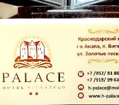 Отдыхали в августе 23-го. Брали студию. Балкон с видом на море и мебелью это классно. Всё очень понравилось. Расположение отеля идеальное, всё необходимое в шаговой доступности. Свой пляж с лежаками и душем, аквапарк перед носом, Паралия рядом- вечером погулять, в кафешке посидеть, в парк атракционов с детишками прогуляться. В отеле чисто, уютно, очень вежливый персонал. Уборка в номере заслуживает отдельной похвалы, даже не к чему придраться! В столовой кушали несколько раз, что-то понравилось, что-то нет! Вокруг огромное количество столовых и кафе, так что с питанием проблем нет! Если соберёмся в Витязево, будем рассматривать Палас в первую очередь. Хозяевам и персоналу огромное спасибо за отдых, проведённый с комфортом! Удачи и процветания!
