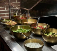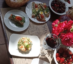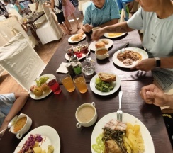 - завтрак два вида каши, горячее, омлет, овощи-фрукты, различная выпечка, вкуснейшая запеканка творожная всегда с ягодами, очень вкусный черный чай, кофе.