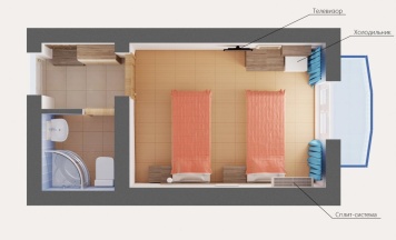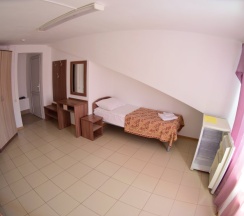 А вот сигнал беспроводной сети WIFI в номере очень слабый, ходили в холл. База на окраине посёлка, далеко от магазинов, идти минут 7-10 до ближайшего.