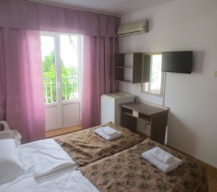 Понравилось: Все понравилось и номер и персонал и очень удобное местоположение. До моря метров 300, рядом и аптека и Сбербанк (банкомат) и столовая. Ухоженная территория, бассейн, батут, наст.теннис, бильярд, детск.площадка. Спасибо большое за прекрасный отдых. Если будем в этих краях, то обязательно приедем сюда.
