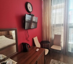 Размещались в данном отеле в июле 2025 года, номер полу-люкс, большой, просторный. Туалет отдельно! В ванной душевая кабинка и раковина, полотенце сушитель работает. На ресепшен всё подробно объясняют, очень доброжелательные! В номере есть кружки, тарелки, столовые приборы, чайник. Всё чисто, постельное, белоснежное🥰. Микроволновка и вода в коридоре. Единственный минус, нет зубных щёток, но через дорогу есть магнит-косметик, так что всё решаемо. Большое спасибо!