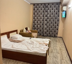 Хочу отметить главное! Все сотрудники очень отзывчивые и приветливые . Номер обычный, просторный, места всем хватило, маленькому гостю предоставили детскую кровать со сменным бельем. Балкон хороший с сушилкой столиком, двумя стульями. Освещение в номере в темное время суток тоже хорошее. Горячая вода в любое время суток. Соседей не слышно через стенку, хотя было достаточно гостей. Бронь была с 3-х разовым питанием. Что хочу сказать, голодным не останешься. На выбор достаточное количество блюд, что стараются угодить, а главное все приготовлено с любовью и для гостей. Всегда чистые приборы, тарелки, столы и раздатка. Вкусные блюда и дружный коллектив.