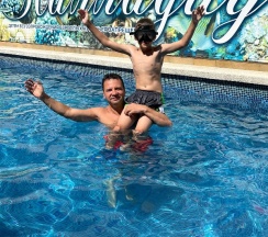 Понравилось: На завтрак нравилось есть блинчики или оладушки со сметаной, которые были по домашнему вкусными. Расположение гостевого дома отличное, не прямо на центральной дороге, а чуть вглубь, скрытое от глаз. На территории 2 бассейна, один побольше и поглубже, другой поменьше с подсветкой, для маленьких детишек очень хороший. Вид с нашего балкона был шикарный, на живописный двор с бассейнами соседнего отеля подороже, где мы слушали все их развлечения. В нашем гостевом доме тоже приходили герои мультфильмов и развлекали детей разными играми и аттракционами. Вообщем проживание в гостевом доме Палладиум было комфортным и уютным, соответствовало цене. Рекомендуем всем останавливаться в этом гостеприимном доме!/