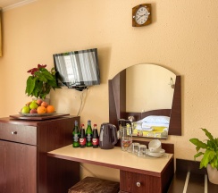 Понравилось: Радушные, отзывчивые хозяева! Классный крытый бассейн с сауной и гидромассажем. Уютный, функциональный номер. Есть шкаф, комод в столике под зеркалом, еще стол для сумок в прихожей и шкафчик, скрывающий минихолодильник. Благодаря Ардо, мы впервые попробовали путешествовать налегке, без чемоданов. Посуда, полотенца на пляж и в сауну с бассейном, фен, чайник в номере - все было! Только кружки свои в этот раз взяли. Любим чай полулитрами пить ))