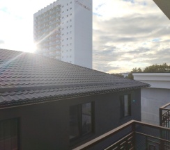 Хороший отель, но номерам требуется хороший ремонт потому что не важно в люксе вы или в стандарте, все достаточно плачевно, если присмотреться. До моря минут 5 идти пешком либо через пансионат проходить, что намного быстрее. Балконы с видом на море только в дорогих номерах и они того стоят (первое фото) Вкусно кормят в баре и есть что выбрать из напитков алко и не только и теплым бассейном на крыше. Завтраки были разнообразные, но салфетки ни в один день проживания утром на завтрак не заметили (последнее фото это место где будет завтрак). Халат был один с дыркой, у другого оторвана петелька для пояса, но чистые хотя бы. Персонал приветливый и нет хамства, нам понравилось. Бронировать лучше заранее.