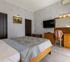 Рекомендую отель для тех, кто любит качественный отдых на уровне! Отдыхали семьей из 3 человек в начале августа. Номер со всеми удобствами, кондиционер, фен, тв, холодильник, чайник, чайный набор, халаты, бутылка воды, мыло, гель для душа, шампунь. Полотенца белоснежные, меняют каждый день, уборка ежедневная качественная каждый день и по запросу. Сытные завтраки включены в стоимость проживания. Можно заказать комплексные обеды и ужины по приятной цене) весь отель новый, чистенький, ухоженный, персонал приветлив и вежлив, помогут решить любую проблему:) удобное расположение, рядом магнит косметик, пятёрочка, лотки фруктов, в 5 минутах ходьбы аптека:) до пляжа минут 10-15 легким прогулочным шагом, с коляской легко гулять, дорогая ровная, без лестниц. В общем отдыхом в этом отеле довольны на 100%