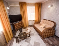 Оба номера в которых останавливались были двухкомнатные, в одной комнате кровать, в другой диван. Имелся холодильник нормального размера, телевизоры, в ванной довольно чисто и приятно. В целом находиться в номере очень приятно. Я бы еще вернулась. До моря надо пройтись конечно, но не критично. Цена очень приятная для такого отеля. Рекомендую.