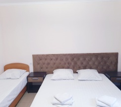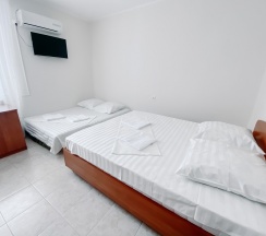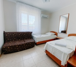 Понравилось: Чистый номер, удобное расположение. Рядом рынок и магазины. До моря правда 10 минут пешком ( засекали время), приветливый персонал. Мы брали трёхместный номер, но так как мы были с маленьким ребёнком то нас предложили семейный на первом этаже по цене трехместного, именно чтобы нам было удобно!!! Спасибо за это большое)
