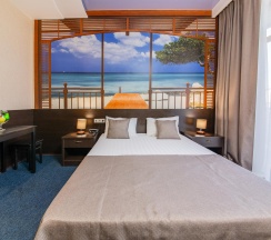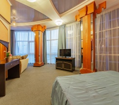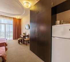Люкс номера в нашем отеле панорамные с видом на морское побережье, однокомнатные и рассчитаны на 2 взрослых человека.