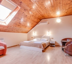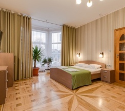 Номер люкс с двуспальной кроватью и диваном площадью 30 кв.м с видом во двор