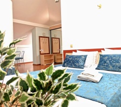 Отель хороший! Плюсы : Красивая территория, ухоженная. Есть бассейн глубокий и детский + лежаки. У нас номер был на 5 этаже , чистый , удобный и уютный. С мини кухней , микроволновка, холодильник и чайник были приятным добавлением. Подниматься пешком туда ещё то веселье )) но на 3-й день я уже летала! Покушать можно в этом же отеле , не дорого. Персонал : очень доброжелательные и веселые девушки ! Всегда с улыбкой общаются)))! До пляжа с детьми 10-12 мин. Минусы: к сожалению они есть !тут делать без машины нечего( вокруг идти некуда. ( кроме пляжа) все развлечения в Геленджике ( до центра 15-20 мин с учетом пробок)