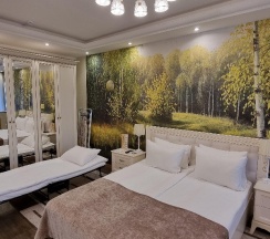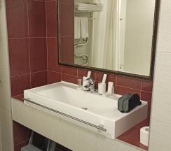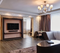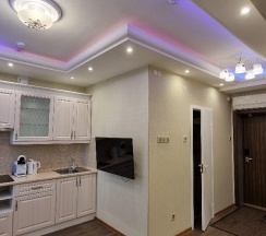 Снимал апартаменты, номер большой, красивый, но не без минусов. Странное расположение телевизора, полурабодающая светодиодная подсветка и плохой слив в душе немного подпортили впечатление.