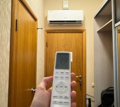 В холлах и номере кондиционер ,что летом существенно для комфорта.