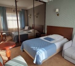 Остановились в номере делюкс , отлично все , в номере все необходимое есть, чистота , порядок, сауна в номере чистая , отлично греет . Сервис хороший, можно заказать в номер еду, в ресторане все вкусно , цены адекватные . Единственный минус за одноразовые тапочки , рвутся моментально, очень неудобно в них ходить, приходилось просить замену несколько раз .