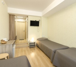 Двухместный номер с 3 отдельными кроватями, телевизором с плоским экраном, рабочим столом,и собственной ванной комнатой с душем и туалетом.