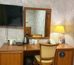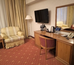 Номера хоть и не новые, но большие, комфортные, теплые. Есть чайник с кофе и чаем, водичка, халаты и мини бар. Утюг на каждом этаже.