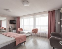 Отдыхали в октябре 2025 года на осенних каникулах с ребенком. Номер семейный. Нам очень понравился, небольшой, двухкомнатный. Все для комфортного проживания есть. Хорошая ванная комната, просторная, с теплыми полами. Есть вместительная гардеробная и при входе отдельный шкаф. И диван, и кровать удобные, не продавленные. Были халаты на всех, включая ребенка, шампунь, мыло, кондиционер, набор для чистки Зубов. Чай, кофе, вода пополнялись каждый день. Ресторан с неплохой кухней. Можно было заказать комплексный обед совсем за смешные деньги. У СПА небольшой но очень приличный бассейн, сауна и хаммам. Множество процедур. Везде чисто. Единственное, чего не хватило все-таки, это развлечений для детей. Кроме посещения бассейна, заняться ребенку было нечем. Хотя именно от бассейна он был в восторге. Персонал очень приятный, дружелюбный, приветливый. Номер убирался каждый день, причем молниеносно. Спасибо! С удовольствием вернулись бы еще!!!
