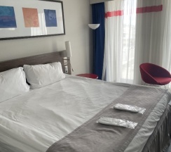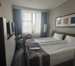 Отличная гостиница. Номера в стиле холидея. Всё продумано. Порадовало наличие бесплатного спортзала - это хороший плюс в пользу отеля. Расположение - ну это просто огонь. От выхода с перрона до крыльца отеля - буквально десять метров ! Завтраки отличные, разнообразием не блещут, но основные блюда все на месте.