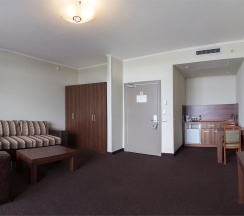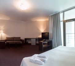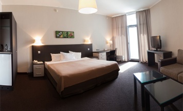 Комфортабельный однокомнатный номер площадью 25 квадратных метров, в котором есть всё необходимое для отдыха и работы.