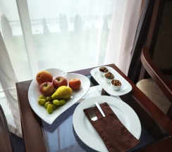 Добрый день! Очень понравился отель с прекрасным видом на Волгу! Приветливый персонал, красивые композиции цветов, горничной особенная благодарность (ежедневная уборка номера, смена полотенец, через день смена постельного)! Всё есть: халаты, тапочки, ванные принадлежности. Отличная шумоизоляция в номерах! Очень вкусные завтраки!! Щучья икра и шампанское на завтрак! 😉 Обеды и ужины тоже вкусные, но за 2 недели поднадоели, хотелось бы разнообразия. 😁После недели проживания был комплимент от отеля в виде фруктов и орешков.