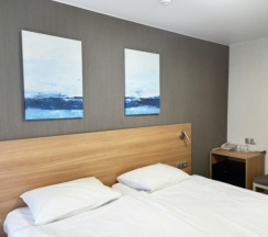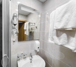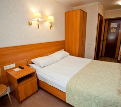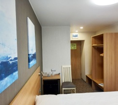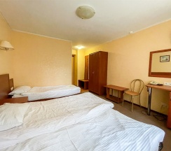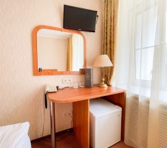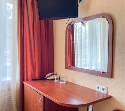 В номере: кровать трансформер (две односпальные кровати или одна двуспальная кровать), кондиционер, стол, телевизор, телефон, холодильник, фен, полка для багажа, душевая кабина, туалетные принадлежности, тапочки.