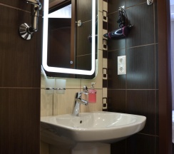 Про сам номер. В номере все, как дома, чисто, уютно, светло. Немного смущал табачный запах с балкона, но мы его не закрыли. В номере есть все: тапочки, халаты, полотенца, зубные щетки, чашки, чайник, чай, вода, холодильник. Да что там, даже будильник есть! Все кристально чисто в номере. Есть ванна. Есть освежитель воздуха, есть туалетная бумага с запасом, а также мыло, гели, шампуни. Постель белоснежная.