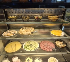 Мы не фотографировали еду, но скажем так - дома так на завтрак мы не едим, тут было все, что душе угодно: каша овсяная, блины, тефтели, мясо под сырным соусом, сосиски, пюре картофельное, гречка отварная, макароны. На десерт были небольшие пирожные. Также были огурцы, сыр, колбаса, творог. Различные соусы тоже в хорошем ассортименте. Надо ли говорить о чае/кофе? Если б не нужда выдвигаться пораньше в путь, то сидели бы на завтраке до вечера!!!