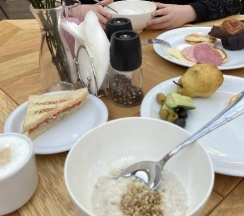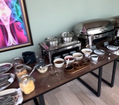 Отличный отель! Хорошее расположение, хорошие номера, в номерах все удобства. Завтрак - шведский стол, не очень разнообразный, но базовые блюда (каши, яйца, хлопья, овощи, выпечка) есть, чай, кофе нормальный из кофе машины.