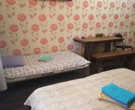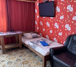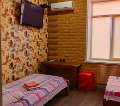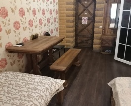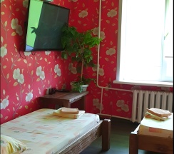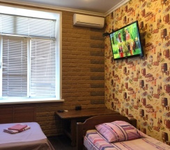 В номере: Двухспальная и односпальная кровати, кондиционер, Wi-Fi, сан узел (душ), стол, стулья, бокалы вешалка, плазменный телевизор.