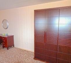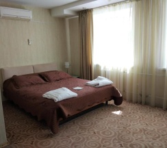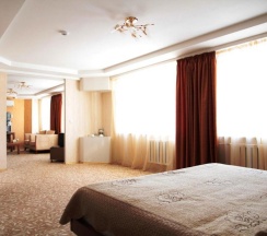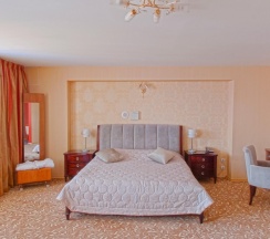 Отличительной особенностью номеров класса Люкс является дорогая комфортабельная мебель, стильный интерьер, а так же расположение этих номеров на самом верхнем этаже гостиничного комплекса "Горизонт", куда Вас доставит панорамный лифт.