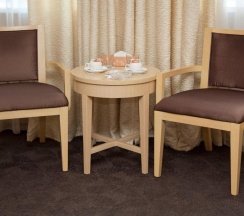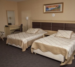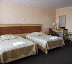 Стандартный двухместный номер оснащен всем необходимым для комфортного проживания: две полуторных кровати, телевизор, холодильник, рабочая зона, WiFi, чайный столик со стульями, ванная комната, фен, комплект туалетных принадлежностей.