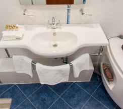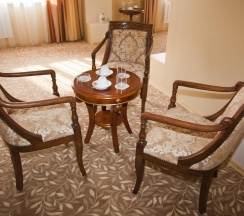 Номер разделен на три зоны, каждая из которых оформлена элитной удобной мебелью. Номер, для тех привык к комфорту и красоте. В подарок для Вас: час бассейна на две персоны, завтрак на две персоны.