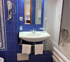 Оснащенность номера: Интернет Wi-fi; Телевизор ЖК; Кондиционер; Холодильник; Мини-бар; Кулер; Ванна; Фен; Туалетные принадлежности