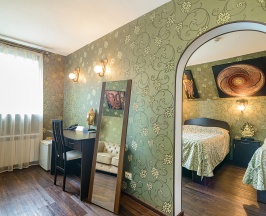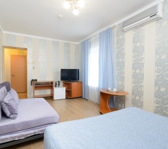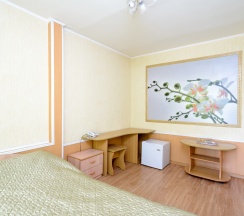 Двухместный номер полулюкс оснащен мягкой двуспальной кроватью, удобными креслами, письменным столом, кондиционером. Вместимость номера не более двух человек